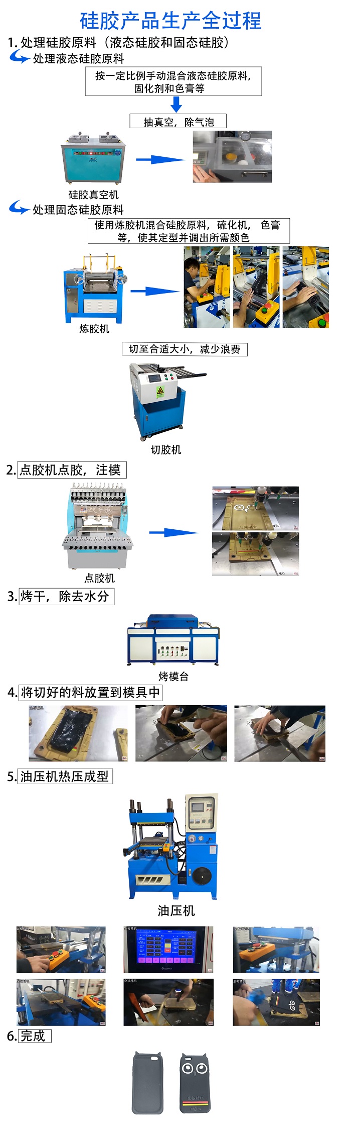金裕公司可提供:硅膠真空機,自動點膠機,硅膠烤模臺,煉膠機,切料機,油壓機等全套硅膠生產(chǎn)設(shè)備,并提供原材料供應(yīng)渠道和生產(chǎn)技術(shù)支持,更多詳情請咨詢:13825737886田先生。