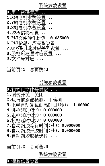 點(diǎn)膠機(jī)系統(tǒng)參數(shù)設(shè)置說(shuō)明主界面下按下Shift+1鍵進(jìn)入系統(tǒng)參數(shù)設(shè)置界面: