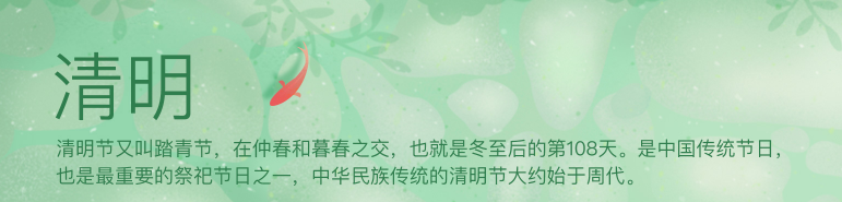 在我國的傳統(tǒng)中,清明踏青的內(nèi)在意義還在于順應時令節(jié)氣。陽春三月,生氣始盛,人們走出屋門,來到野外,主動地迎合時氣,促進自身體內(nèi)的陽氣流轉(zhuǎn),對身體大有裨益。 清明節(jié)又叫踏青節(jié),在仲春與暮春之交,也就是冬至后的第104天。是中國傳統(tǒng)節(jié)日,也是最重要的祭祀節(jié)日之一,是祭祖和掃墓的日子中華民族傳統(tǒng)的清明節(jié)大約始于周代,距今已有二千五百多年的歷史。