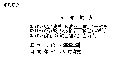 教導(dǎo)矩形的兩個(gè)對(duì)角點(diǎn),自動(dòng)生成填充圖形。當(dāng)膠槍直徑無(wú)法被設(shè)定的邊長(zhǎng)整除時(shí),會(huì)提示是否放大或縮小膠槍直徑來(lái)使膠槍直徑能被邊長(zhǎng)整除。