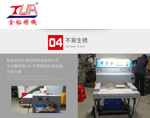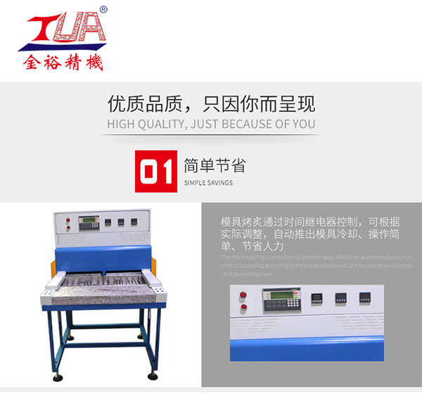 下面給大家講下金裕新產(chǎn)品微電腦雙工位冷熱烤模臺(tái)特點(diǎn):1.模具烤炙通過一體機(jī)操作界面設(shè)置,時(shí)間可根據(jù)實(shí)際調(diào)整,溫度可以提前預(yù)熱,自動(dòng)推出模具冷卻、操作簡(jiǎn)單、節(jié)省人力。2.模具冷卻區(qū)采用水泵噴水循環(huán)冷卻、不會(huì)讓水濺到產(chǎn)品區(qū)。3.機(jī)臺(tái)上溫采用真空發(fā)熱管加熱,下溫采用發(fā)熱管加熱,溫度穩(wěn)定、更節(jié)能省電。4.機(jī)架采用方通型材焊接結(jié)構(gòu)方式、鈑金經(jīng)烤漆處理。5.冷卻槽采1.5t 不銹鋼板折彎而成,不易生銹。 ![]() 金裕公司提供攪拌機(jī),PVC真空機(jī),全自動(dòng)滴塑機(jī),PVC烤箱(PVC流水線),底料機(jī)等全套PVC生產(chǎn)設(shè)備,同時(shí)提供原材料供應(yīng)渠道和生產(chǎn)技術(shù)支持,了解更多請(qǐng)咨詢:13826974368(微信同號(hào))汪小姐 下面給大家?guī)砑?xì)節(jié)圖 ![]() ![]() ![]() ![]() 東莞市金裕自動(dòng)化機(jī)械設(shè)備有限公司成立于2000年,金裕坐落于東莞市大嶺山向東工業(yè)區(qū),創(chuàng)辦硅膠、PVC商標(biāo)禮品生產(chǎn)設(shè)備.金裕研發(fā)的全自動(dòng)全自動(dòng)點(diǎn)膠機(jī)、矽膠機(jī)、油壓機(jī)、KPU鞋材機(jī)以及終于實(shí)現(xiàn)了的智能無人車間生產(chǎn)流水線,金裕的自動(dòng)化設(shè)備可以做到讓你省人、省電、省管理。金裕公司歡迎新老來訪,選擇金裕,沒有顧慮。m.shanghaizhaojing.com |