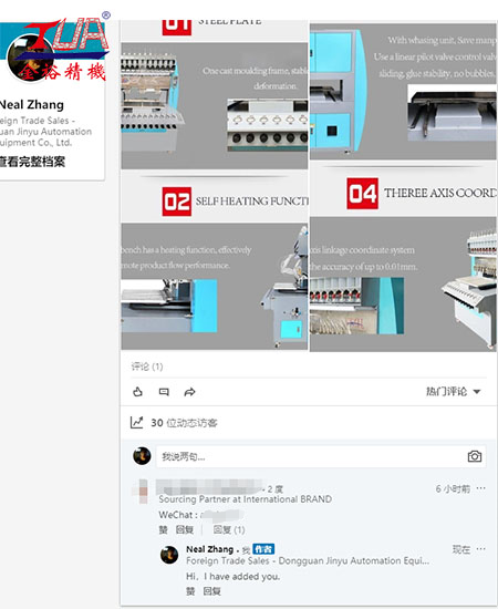 下午在社交網(wǎng)站上發(fā)了一則金裕點(diǎn)膠機(jī)細(xì)節(jié)圖的一個預(yù)覽,沒想到一個外國客戶在下面評論并留下了自己微信想要了解點(diǎn)膠機(jī)這個設(shè)備,加了微信后給這個孟加拉的客戶發(fā)了點(diǎn)膠機(jī)的相關(guān)資料視頻,這個孟加拉的客戶說要來我們工廠看,具體來的時間暫時不知道,后續(xù)來中國有相關(guān)安排,在給到通知!金裕歡迎每一個客戶來到廠內(nèi)參觀了解設(shè)備,選擇金裕沒有顧慮?。。?/span> ![]() 東莞市金裕自動化機(jī)械設(shè)備有限公司成立于2000年,金裕坐落于東莞市大嶺山向東工業(yè)區(qū),創(chuàng)辦硅膠、PVC商標(biāo)禮品生產(chǎn)設(shè)備.金裕研發(fā)的全自動點(diǎn)膠機(jī)、矽膠機(jī)、油壓機(jī)、KPU鞋材機(jī)以及終于實現(xiàn)了的智能無人車間生產(chǎn)流水線,金裕的自動化設(shè)備可以做到讓你省人、省電、省管理。金裕公司歡迎新老來訪,選擇金裕,沒有顧慮。m.shanghaizhaojing.com |