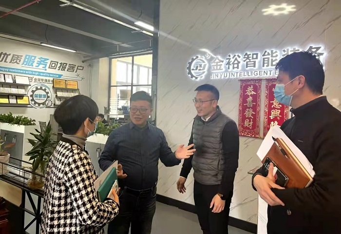 2月24日,東莞市茶山鎮(zhèn)經(jīng)發(fā)局葉笑美局長(zhǎng)一行蒞臨莞民投·松湖信息產(chǎn)業(yè)園考察。在園區(qū)執(zhí)行總經(jīng)理陳滿(mǎn)根的陪同下,考察組一行走訪了招商中心,了解園區(qū)的工程進(jìn)度、企業(yè)進(jìn)駐及復(fù)工復(fù)產(chǎn)等情況,并與園區(qū)工作人員進(jìn)行了座談。葉笑美充分肯定了園區(qū)的招商及運(yùn)營(yíng)工作,并表示經(jīng)發(fā)局將持續(xù)營(yíng)造優(yōu)質(zhì)的營(yíng)商環(huán)境,助力園區(qū)及入園企業(yè)發(fā)展,共同創(chuàng)造更大的社會(huì)經(jīng)濟(jì)效益。 ![]() 葉笑美一行還前往入園企業(yè)東莞市金裕自動(dòng)化機(jī)械設(shè)備有限公司,深入了解企業(yè)生產(chǎn)情況、2021年產(chǎn)值及2022年發(fā)展計(jì)劃。考察組與各企業(yè)負(fù)責(zé)人親切交談,鼓勵(lì)企業(yè)用好用足政策,加大科技創(chuàng)新力度,促進(jìn)企業(yè)高質(zhì)量發(fā)展。 ![]() 葉笑美局長(zhǎng)一行在金裕公司考察 |