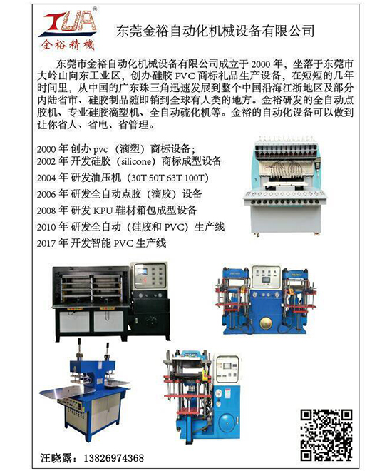 東莞市金裕自動(dòng)化機(jī)械設(shè)備有限公司成立于2000年,坐落于東莞市大嶺山向東工業(yè)區(qū),創(chuàng)辦硅膠、PVC商標(biāo)禮品生產(chǎn)設(shè)備.金裕研發(fā)的全自動(dòng)全自動(dòng)點(diǎn)膠機(jī)矽膠機(jī)、油壓機(jī)、KPU鞋材機(jī)等,金裕的自動(dòng)化設(shè)備可以做到讓你省人、省電、省管理。金裕公司歡迎新老來(lái)訪,選擇金裕,沒(méi)有顧慮。m.shanghaizhaojing.com