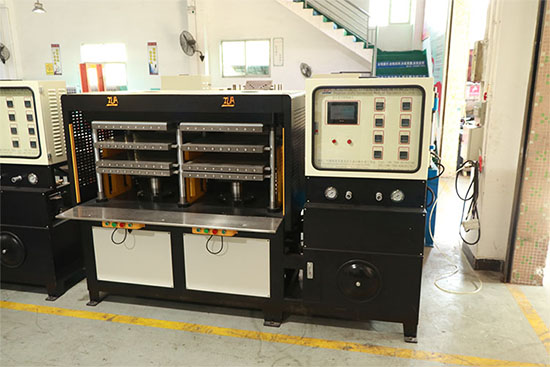 相對于六個位鞋材機,四個位鞋材機最大的區(qū)別在于它四個工位是獨立 的。四個工位的溫度、開模、合模、保壓時間、壓力均是獨立控制的, 所以操作起來更加靈活,適用于小批量、模具種類多的生產(chǎn)場合。 六個位鞋材機的6個工位分成兩組,每組三個工位,同一組的三個工位 由一個油缸控制。組與組之間的溫度、開模、合模、保壓時間、壓力相 互獨立互不影響,而同一組的這些參數(shù)是相同的,而且發(fā)熱板的總數(shù)跟 四個位的一樣,都是8塊,但工作位總數(shù)卻比四個位的多兩個,所以相 對于四個位鞋材機而言,六個位鞋材機更適用于大批量、模具種類少的 生產(chǎn)場合. 金裕鞋材機實拍圖