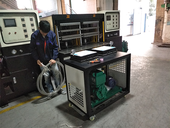 我們安裝技術(shù)人員安裝硅膠真空機(jī)現(xiàn)場(chǎng)(下面給大家安利下金裕的真空機(jī))