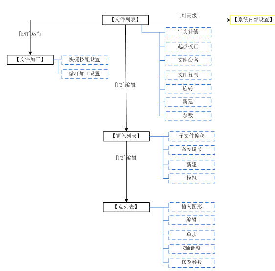 金裕點(diǎn)膠機(jī)界面層次和功能簡(jiǎn)介![]() 示教盒操作界面層次示意圖 上圖為金裕點(diǎn)膠機(jī)示教盒操作界面層次示意圖。用戶主要用到的就是4個(gè)相關(guān)界面:【文件列表】、【顏色列表】、【點(diǎn)列表】、【文件加工】。 1. 顏色列表。列舉出當(dāng)前選擇的加工文件的所有顏色。提供了偏移 高度調(diào)節(jié)、模擬運(yùn)行、設(shè)置膠頭等功能。 2. 點(diǎn)列表。列舉出當(dāng)前顏色的所有圖形和點(diǎn)。提供了單步、編輯、 修改圖形參數(shù)等功能。 3. 文件加工。進(jìn)行文件加工,停止等。提供了設(shè)置快捷按鈕、循環(huán) 加工參數(shù)等功能。 另外,在【文件列表】界面按[#]能進(jìn)入【高級(jí)設(shè)置】界面,該界面中的功能為系統(tǒng)高級(jí)設(shè)置,只允許工程師來(lái)配置其中的設(shè)置,不推薦操作員進(jìn)入該界面修改設(shè)置。 東莞市金裕自動(dòng)化機(jī)械設(shè)備有限公司成立于2000年,金裕坐落于東莞市大嶺山向東工業(yè)區(qū),創(chuàng)辦硅膠、PVC商標(biāo)禮品生產(chǎn)設(shè)備.金裕研發(fā)的全自動(dòng)全自動(dòng)點(diǎn)膠機(jī)、矽膠機(jī)、油壓機(jī)、KPU鞋材機(jī)以及終于實(shí)現(xiàn)了的智能無(wú)人車間生產(chǎn)流水線,金裕的自動(dòng)化設(shè)備可以做到讓你省人、省電、省管理。金裕公司歡迎新老來(lái)訪,選擇金裕,沒(méi)有顧慮。m.shanghaizhaojing.com |