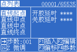 金裕點膠機(jī)單步調(diào)試 在【點列表界面】中,按下[ENT]單步就進(jìn)入了單步模式。此時針頭會運動到指定點位置。