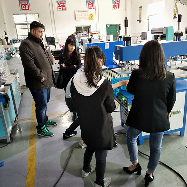今天上午廠內來一位意大利的客戶,這次客戶主要是過來看凹凸模壓花設備的,來的時候帶來了一個翻譯來到了現(xiàn)場。在打樣過程中我們的技術人員邊給這個客戶介紹凹凸模的流程翻譯在一旁邊翻譯,現(xiàn)場這個意大利客戶現(xiàn)場看到我們技術人員打樣的過程,還是挺滿意的,之后我們外貿銷售人員帶顧客來到了二樓的樣品間繼續(xù)介紹,過來一會吃了個飯后,聊了一會,就下了一臺凹凸模壓花機